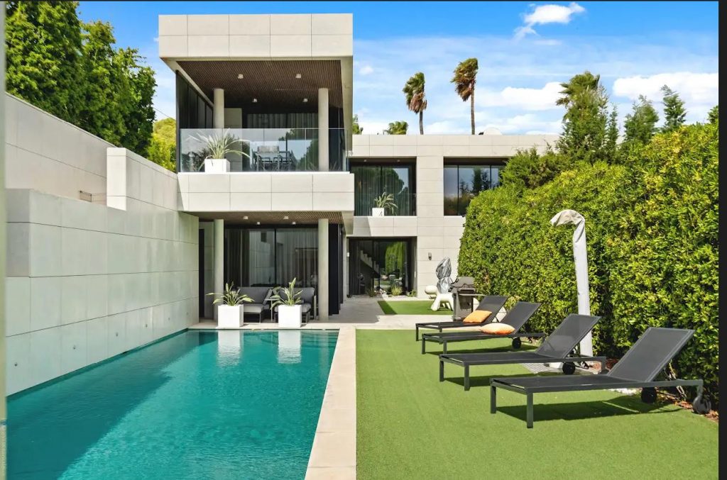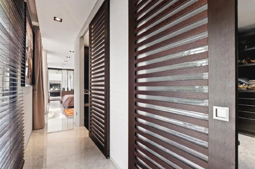 The master suite opens onto the garden terrace and swimming pool.